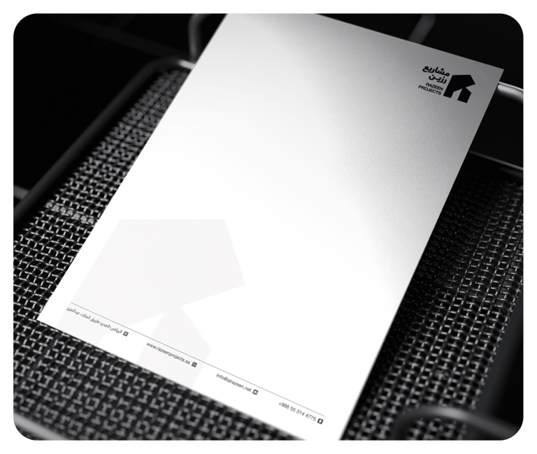The RAZEEN Projects logo reflects the company's identity in real estate development through a solid, geometric design that combines elegance and functionality. The symbol forms the letter "R" in an architectural-inspired structure, representing stability, quality, and innovation. The abstract composition reinforces the brand’s visual identity, with strong and balanced typography that enhances professionalism and credibility. The logo is designed for versatile applications across digital and print platforms. It embodies RAZEEN Projects' vision of delivering modern, sustainable real estate solutions that reflect luxury and engineering excellence.
